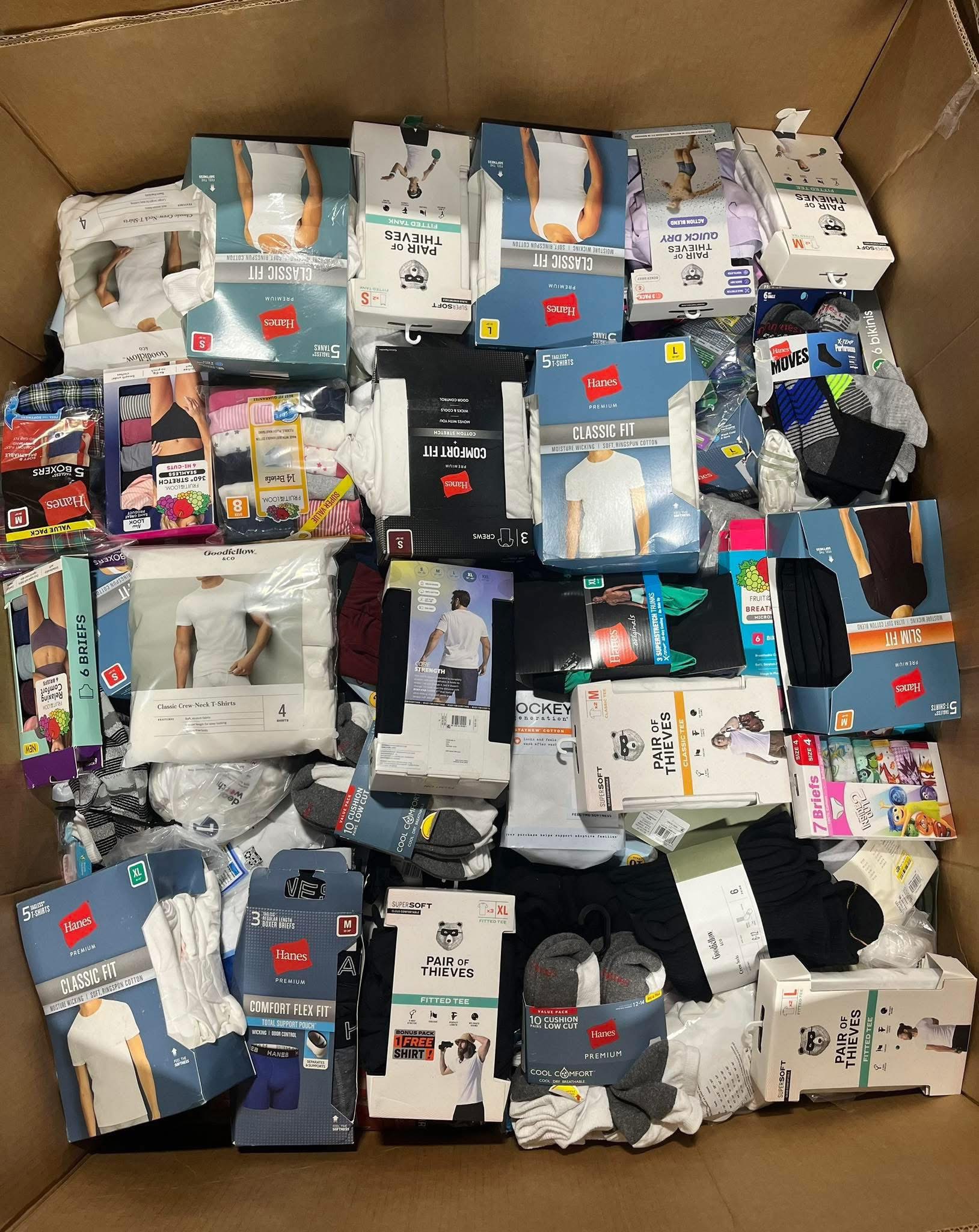 Brands: May include Hanes, Fruit of the Loom, Jockey, Gildan, and others